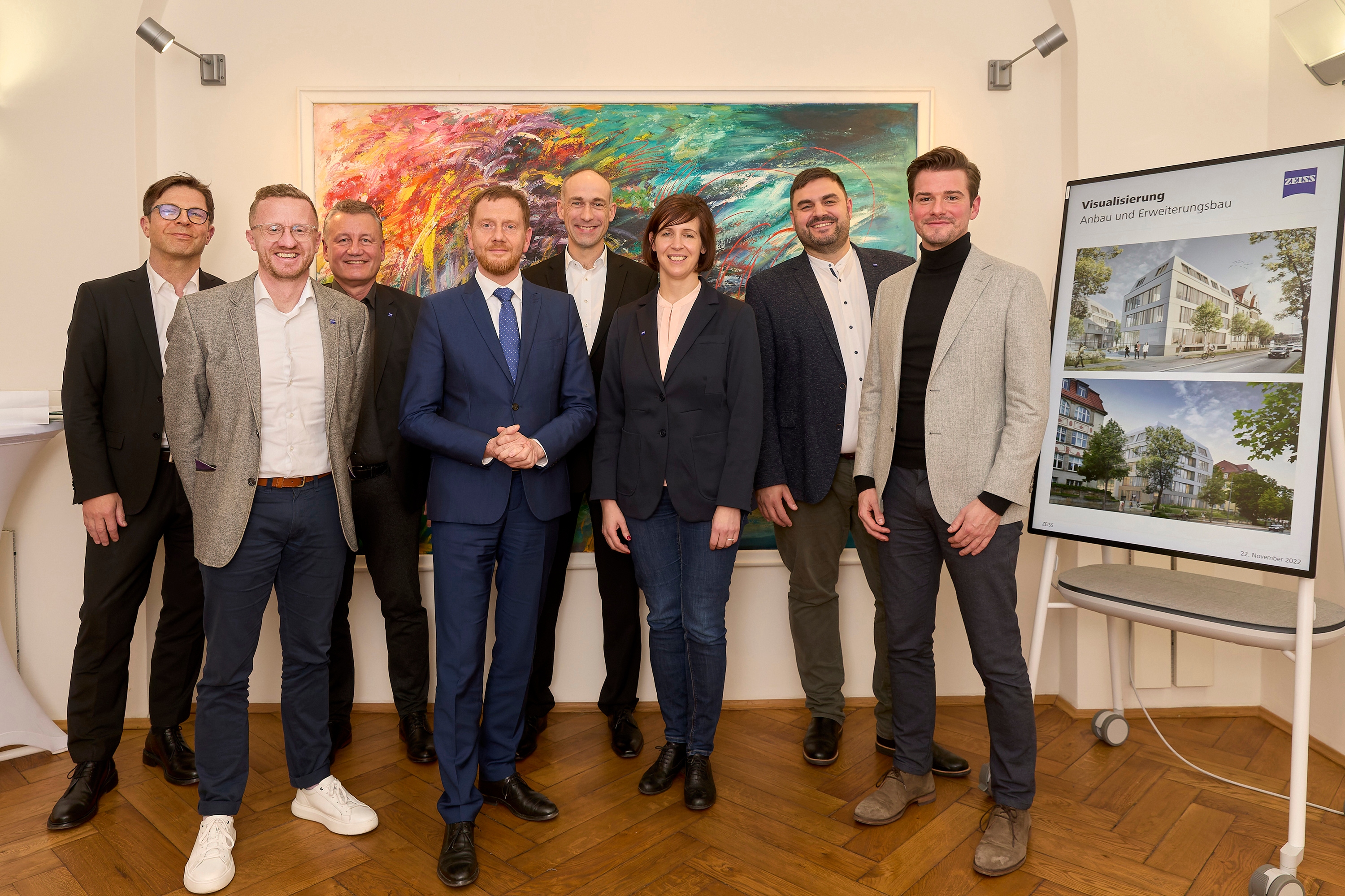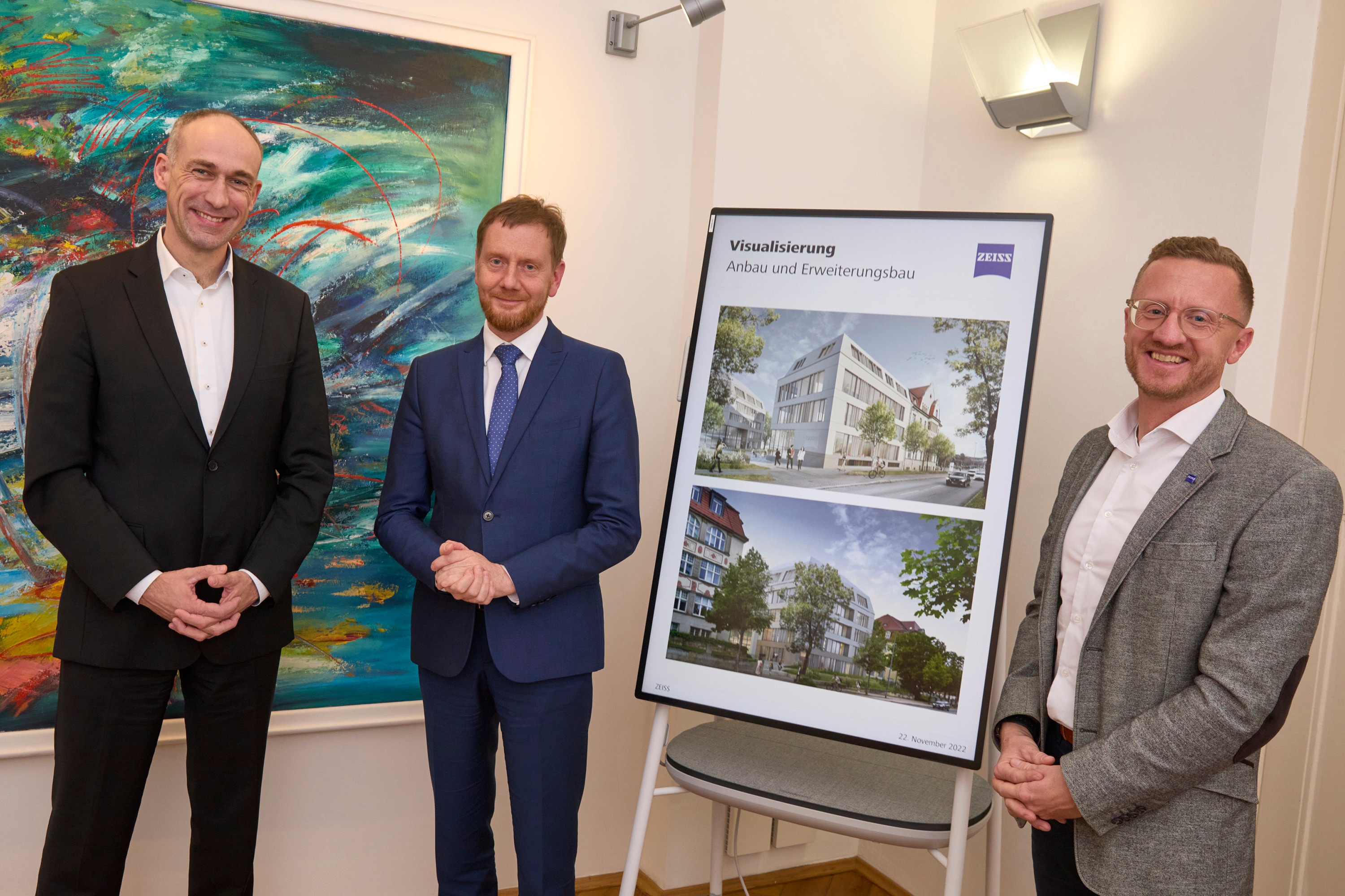 ZEISS investiert am Innovationsstandort Dresden: Ministerpräsident Kretschmer informierte sich über die Neubaupläne