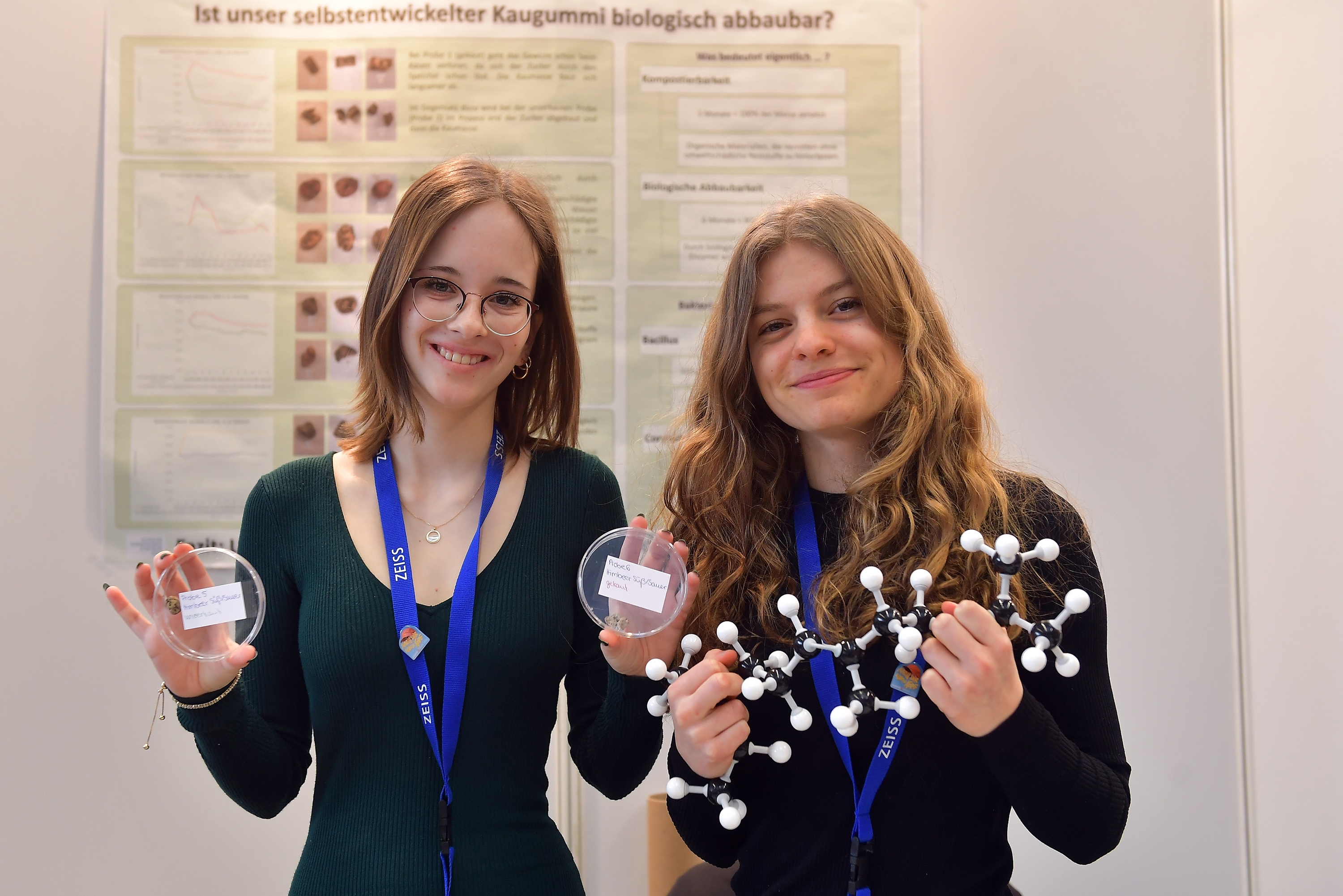 Den ersten Platz in der Sparte Jugend forscht im Bereich Bestes Interdisziplinäres Projekt teilen sich Johanna Lillith Schultz und Julia Peiselt von der Lobdeburgschule Jena für ihr Projekt „Ist unser selbst gemachter Kaugummi auch biologisch abbaubar?“