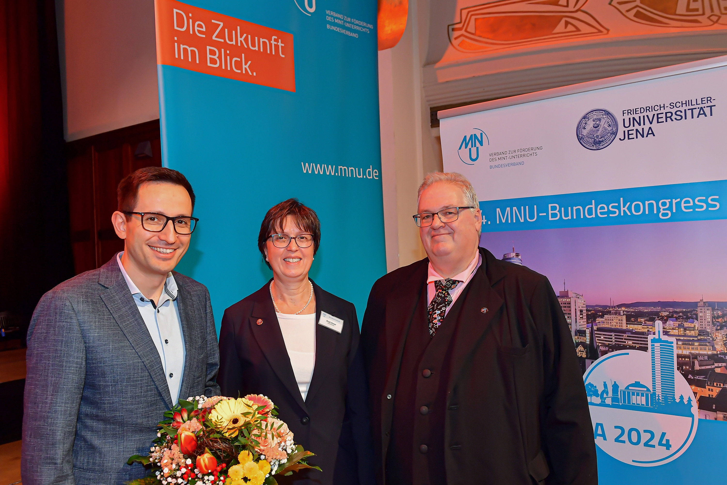 Dr. Michelangelo Masini Leiter Research and Technology von ZEISS, mit Birgit Eisner und Frank Herrmann, Vorsitzender des MNU (v.l) bei der Eröffnungsfeier des 114. MNU-Bundeskongress