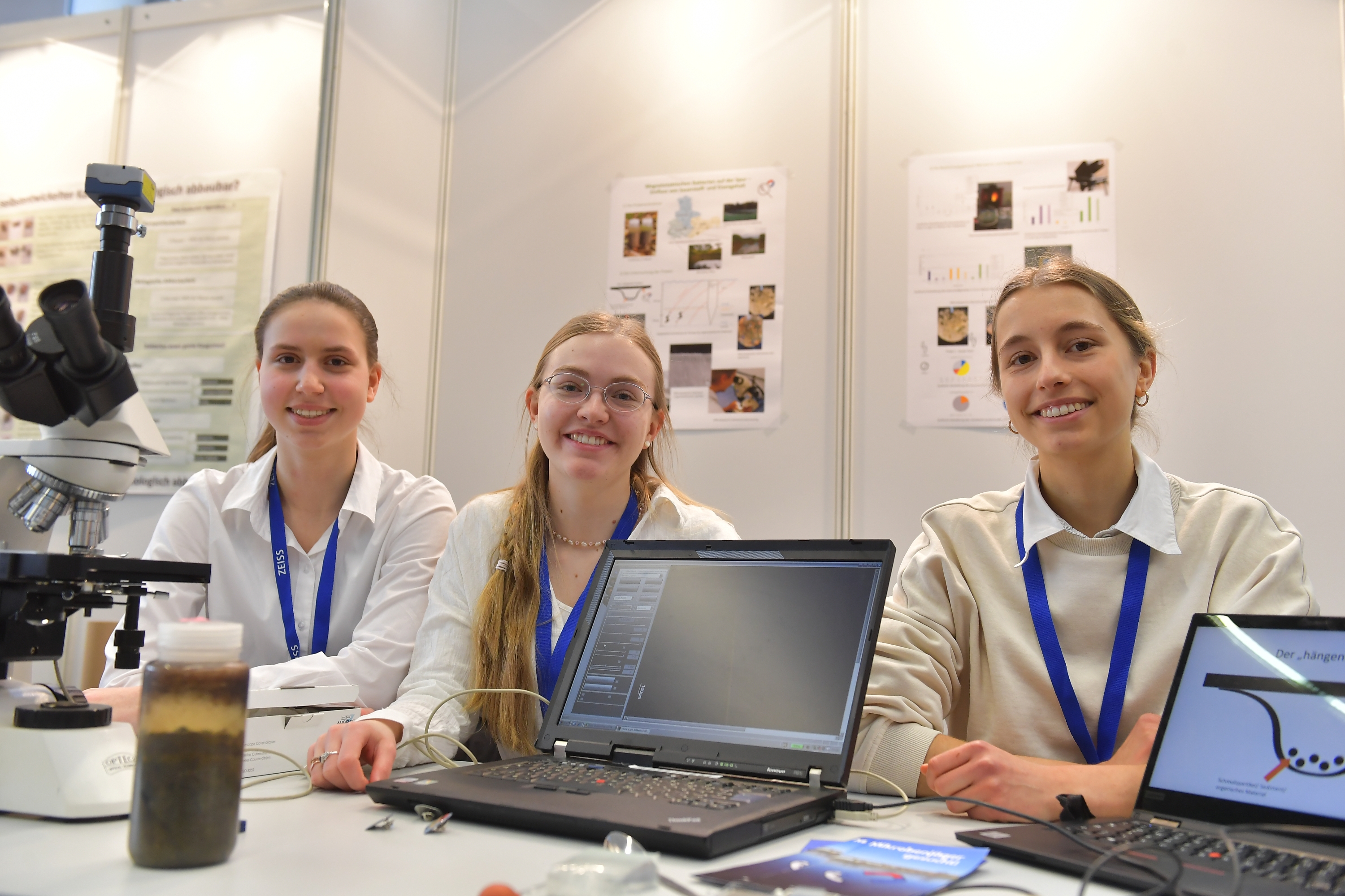 Malena Elisa Böttcher, Marie Harzendorf und Anouk Bochmann belegten den ersten Platz des Regionalwettbewerbs Jena von Jugend forscht 2024 im Bereich Biologie für ihr Projekt "Magnetotaktischen Bakterien auf der Spur - Einfluss von Sauerstoff- und Eisengehalt"