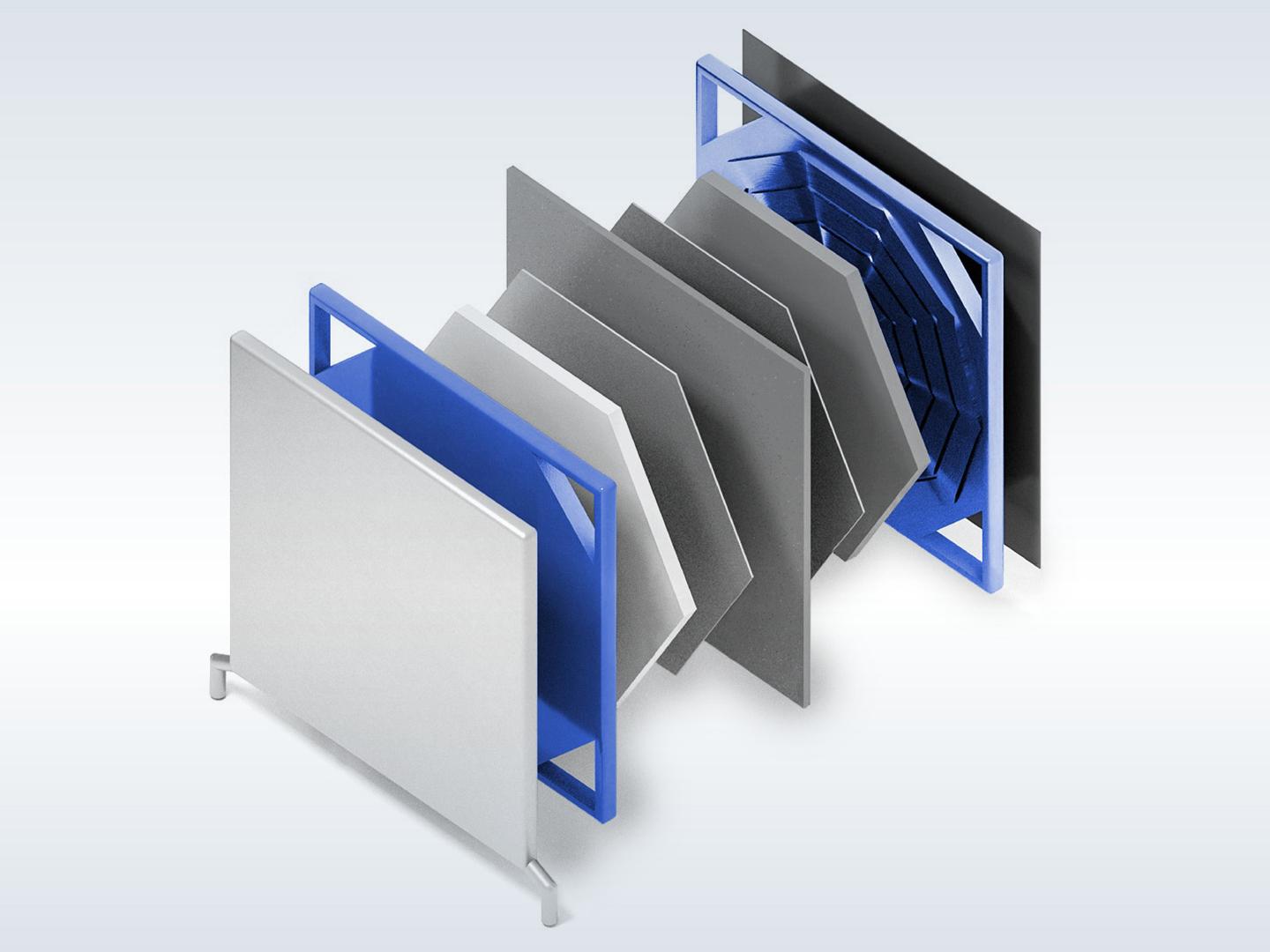 Der Zellrahmen enthält Strömungsfelder, Öffnungen und Dichtungen, die die Membran präzise positionieren und die verschiedenen Abschnitte des Stapels effektiv abdichten, um eine optimale Trennung zu gewährleisten. Dies dient der Reinheit des Wasserstoffs und verhindert eine Vermischung der Materialien. Abdeckplatten und Zellrahmen müssen hinsichtlich Genauigkeit und Abmessungen überprüft werden, um ein präzises Stapeln und die Dichtheit des Stapels sicherzustellen.