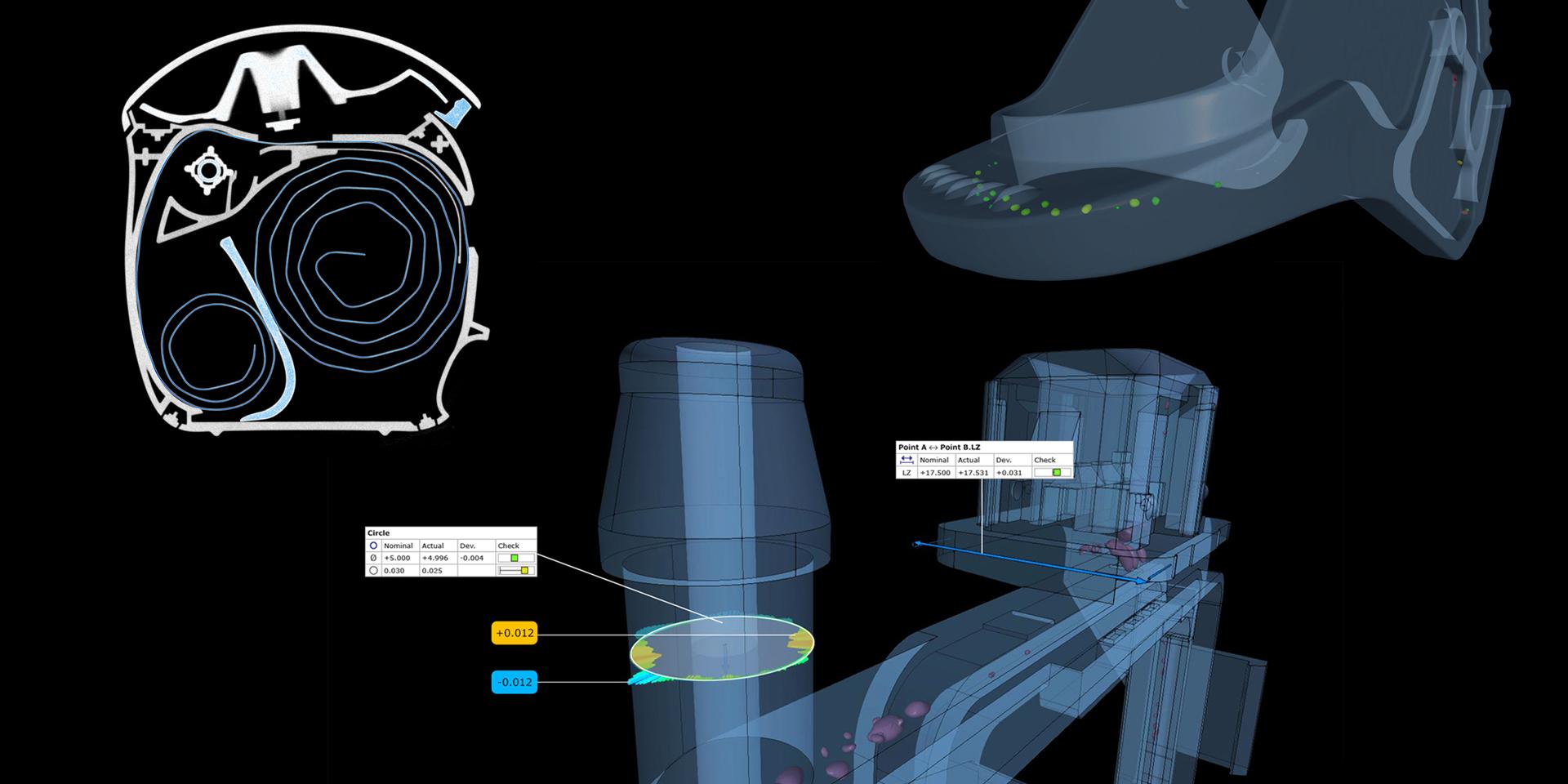 Visualisieren und analysieren Sie Ihre Bauteile bis in den inneren Kern mittels CT-Daten. Die leistungsstarke ZEISS INSPECT Software unterstützt Sie bei der Visualisierung und Analyse der Daten. Werten Sie Defekte, Strukturen und Zusammenbauten aus und bündeln Sie Ihre Ergebnisse in leicht verständlichen Reports.