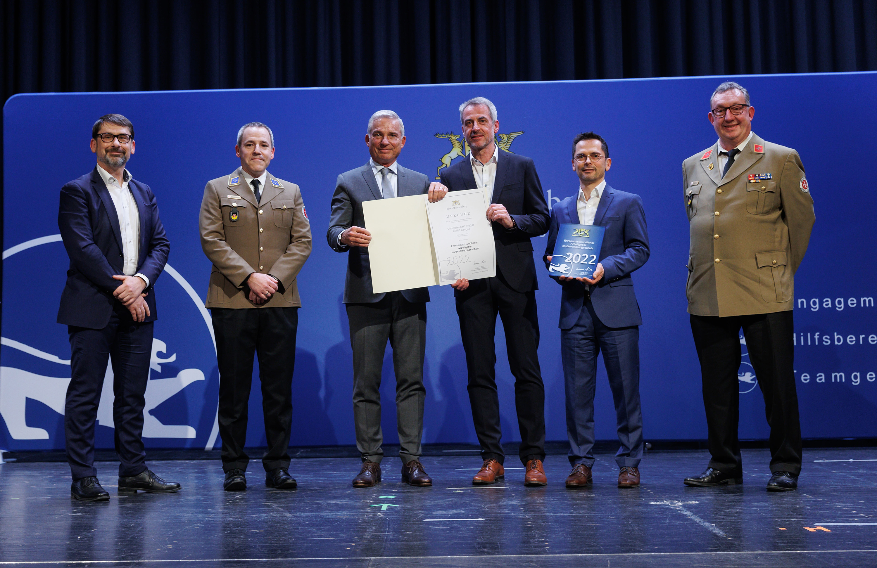 Die Auszeichnung „Ehrenamtsfreundlicher Arbeitgeber im Bevölkerungsschutz“ wird jährlich vom Land Baden-Württemberg verliehen. ZEISS erhielt die Wertschätzung zum wiederholten Mal, zuletzt 2018. Vorschlagsberechtigt sind Hilfsorganisationen und Kommunen. Die Vorschläge werden dann vom Ministerium des Inneren, für Digitalisierung und Kommunen in Baden-Württemberg ausgewertet.