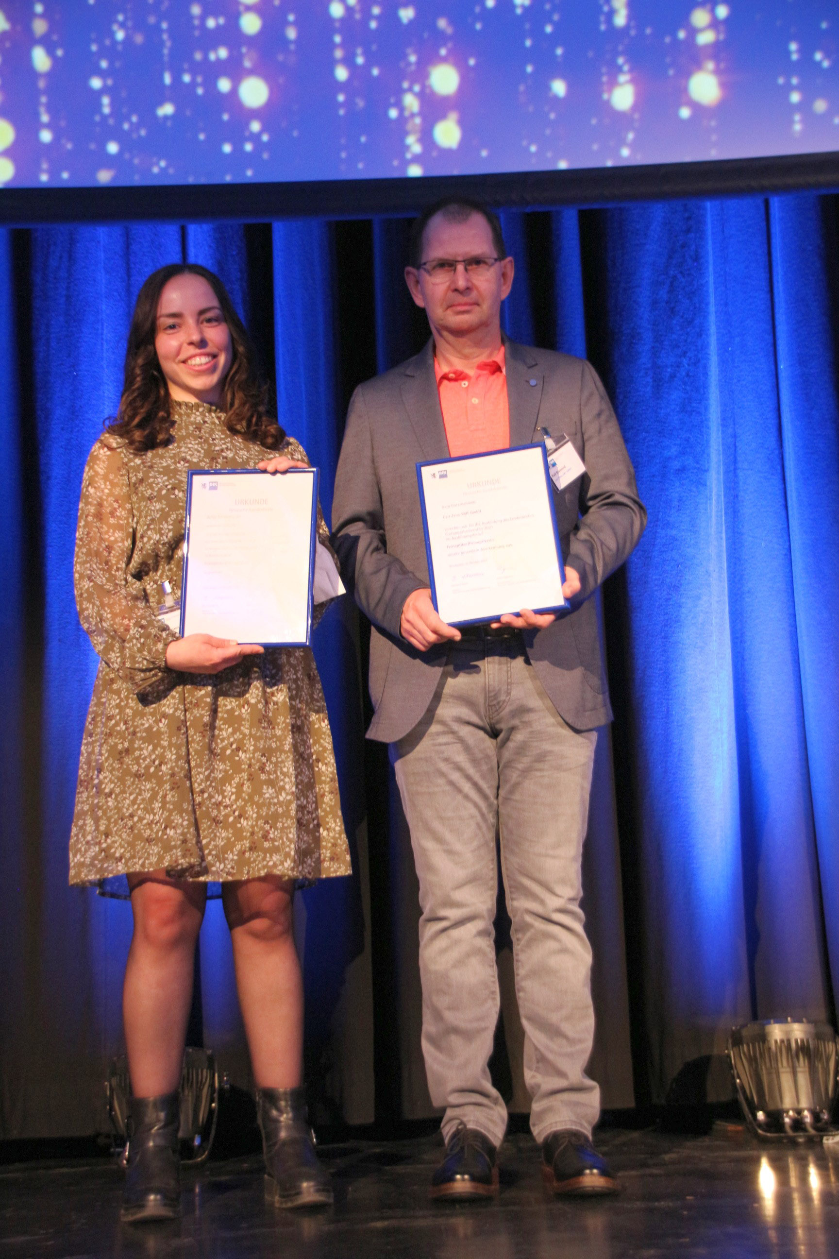 Die landesbeste Feinoptikerin Julia Jennemann (links) und Ralf Bremond, Ausbilder im Bereich Feinoptik bei ZEISS, nahmen beim IHK-Jahresempfang die Auszeichnungen entgegen.